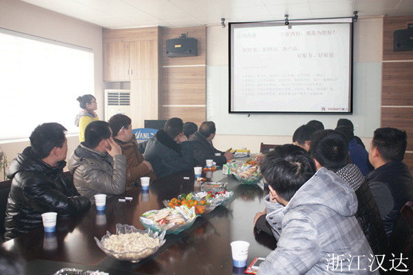 2014.02.09,是浙江漢達(dá)正式開工的好日子,恰遇新年的第一場雪。都說瑞雪兆豐年,公司的各位主管、員工及前來參加年度經(jīng)銷會議的經(jīng)銷商們,冒著大雪,紛紛地加入到點火儀式當(dāng)中,希望借著這瑞雪和煙花,沾一沾喜氣和好運,共同期盼著2014年,在浙江漢達(dá)領(lǐng)導(dǎo)層的帶領(lǐng)下,打開局面,事業(yè)更上一層樓。在儀式結(jié)束后,由營銷中心負(fù)責(zé)在四樓會議室,召開了年度經(jīng)營商會議。公司總經(jīng)理出席了會議,并作講話。營銷應(yīng)副總為經(jīng)營銷商解讀了新年里的銷售獎勵政策,并對上一年度的銷售精英進(jìn)行了獎勵。技術(shù)副總應(yīng)偉達(dá)則就公司最新開發(fā)和主推的幾款產(chǎn)品,對其性能、技術(shù)參數(shù)等作了詳細(xì)的介紹。